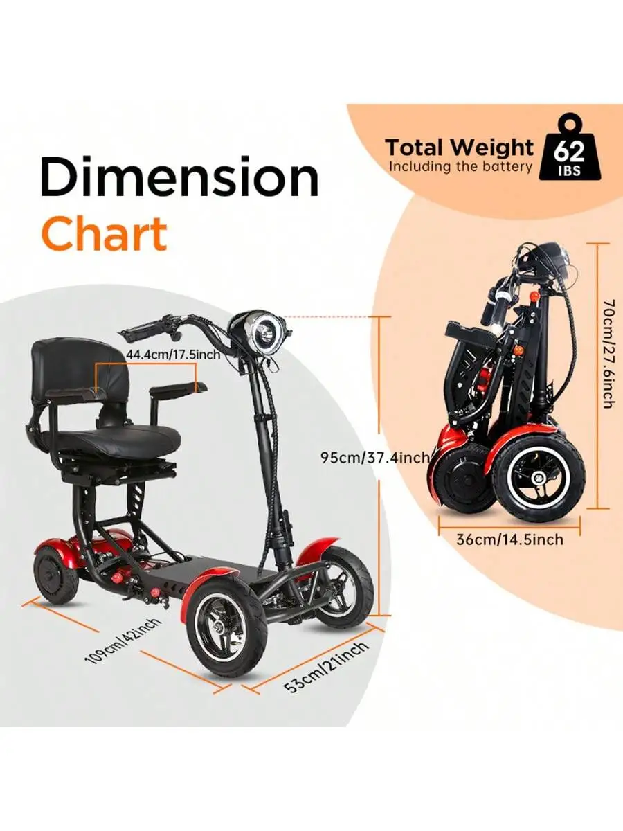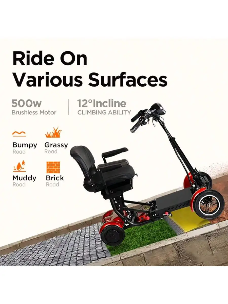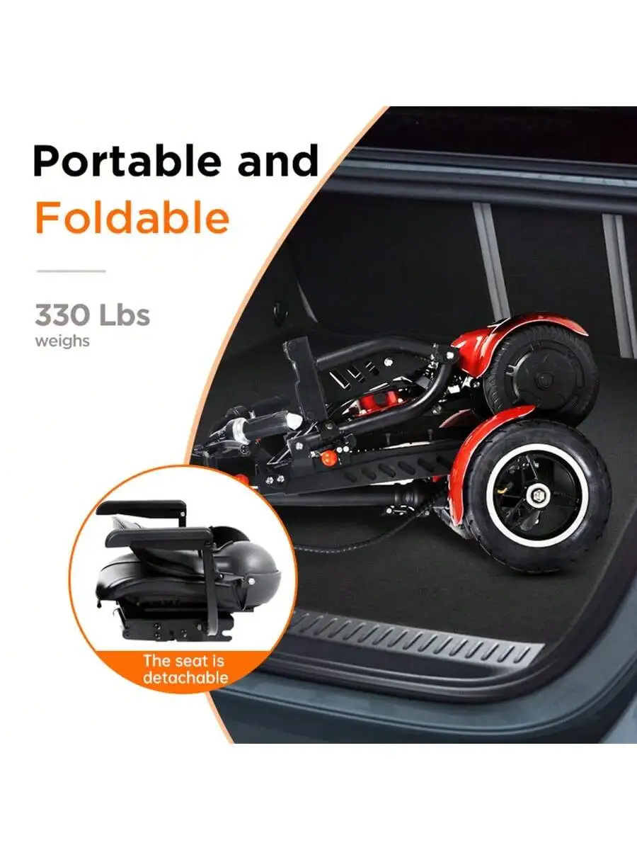 This 500W foldable four-wheel electric scooter is designed for safe and convenient mobility. With a top speed of 12 miles per hour, it offers a smooth ride for urban outings. The sturdy four-wheel design ensures stability and balance, perfect for elderly users. Its foldable frame makes storage and transport simple and hassle-free. A spacious front basket provides room for shopping, personal items, or daily essentials. Powered by a reliable 500W motor, it handles city streets and light all-terrain paths with ease. The scooter’s durable build ensures long-lasting use and dependable performance. Comfortable seating and ergonomic design allow for extended riding without fatigue. Easy-to-use controls make it beginner-friendly and practical for everyday use. Enjoy independence and comfort with this versatile electric mobility scooter.